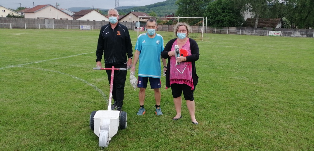En effet, hier mardi, de 17 heures 30 à 19 heures 30, soit durant 2 heures, Gabrielle SALVI, Christophe COMBETTE, Nicolas HAUTOIS, Benjamin HOUILLON et votre serviteur, ont repris toutes les mesures et tracé deux terrains de football à 8, afin que les rencontres prévues ce week-end (plateau U13F, plateau U15F / U17F, plateau Séniors G) au stade de la cité minière, puissent avoir lieu...