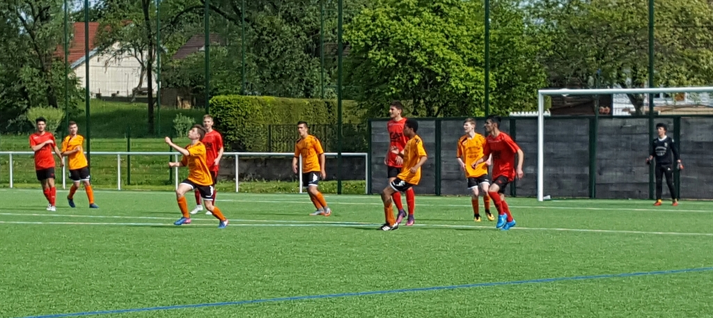 Nos footballeurs U18G ont joué un match en retard du championnat, sur le terrain synthétique de LURE... Opposés à une équipe à fière allure de part la présence de joueurs habitués à jouer au niveau régional, ou encore en équipe Séniors G, nos orange et noir ont résisté une bonne heure de jeu, avant de craquer... Les locaux, bien meilleurs au niveau du jeu, ont marqué dès la 2'... On pouvait alors craindre pour les coéquipiers de Benjamin HOUILLON... Toutefois, à la 3ème minute, Jordan TRUCHOT égalise pour nos couleurs... Les lurons déploient ensuite un jeu collectif de qualité et nos représentants luttent tant bien que mal... Notre portier se montre rassurant et donne ainsi du courage aux partenaires de Tom DURUPT, encore impressionnant de part les kilomètres parcourus... Dominés, nos joueurs U18G parviennent cependant à placer quelques attaques intéressantes, mais sans réussite... La pause est sifflée sur le score de 1 partout...
