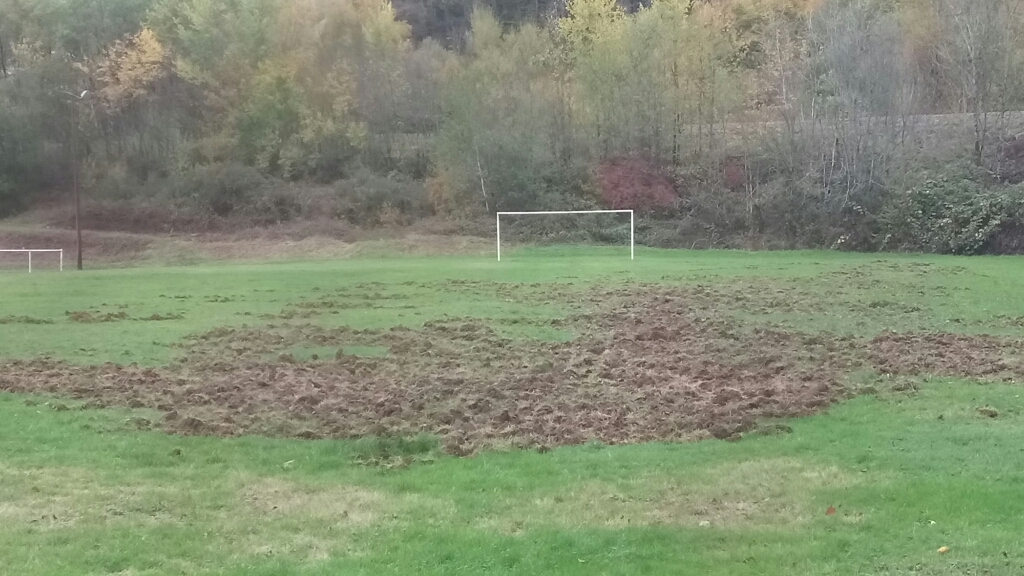 Le petit terrain d'entraînement du stade de CHAMPAGNEY a été très détérioré ces dernières heures, par des sangliers...