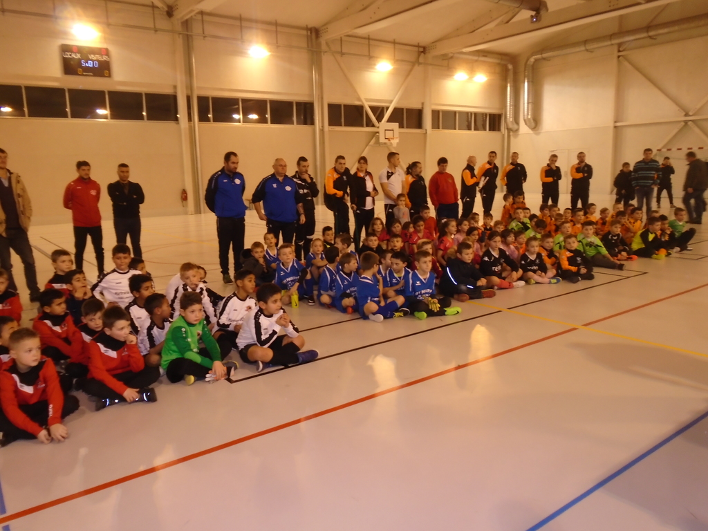 En effet, 16 équipes étaient bien présentes et au total, 97 participants auront foulé le sol de ce nouveau gymnase... Quant aux tribunes, elles étaient copieusement garnies... Ainsi, plus de 350 personnes ont assisté à ce tournoi U9G, organisé par le FC PAYS MINIER...