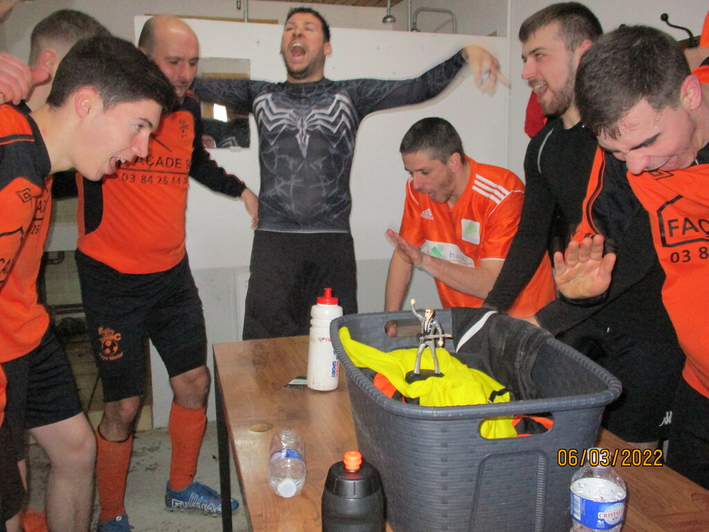 Pour terminer, à FROIDECONCHE, nos footballeurs Séniors G (A) ont pris trois nouveaux points importants... Nos orange et noir ont gagné 4 buts à 0 face à l'équipe fanion de VALLEE DU BREUCHIN et restent ainsi en bonne position pour la course à l'accession... En effet, deuxième du championnat, mais avec un match de plus que le troisième, notre groupe Séniors G (A) distance désormais les quatrièmes et les cinquièmes de six et huit points... Trois équipes pourraient donc lutter pour la montée en Départemental 1... Nos footballeurs Séniors G (A) se doivent désormais de continuer à s'imposer... En effet, chaque point perdu pourrait avoir son importance au décompte final...