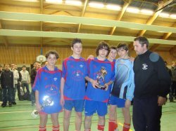 Dernière équipe arrivée au gymnase de CHAMPAGNEY, à l'occasion du tournoi U15, (cette équipe a d'ailleurs joué sa première rencontre à 4 contre 5, rencontre qu'elle n'a pas perdu, score 0 à 0...), l'équipe de MELISEY / ST BARTHELEMY, termine première au classement générale...