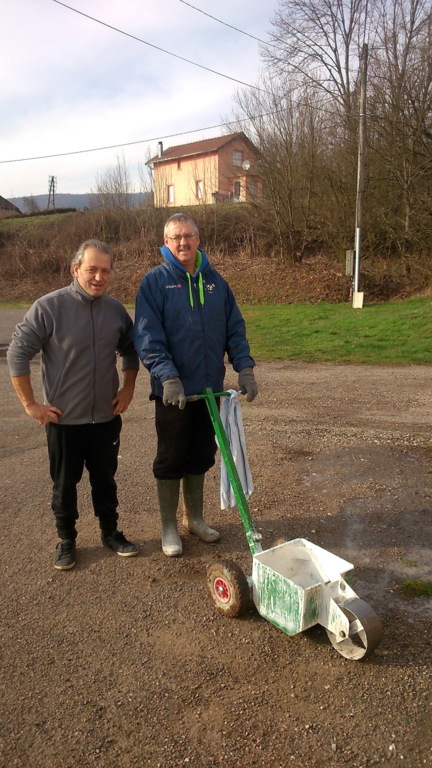 Ce samedi après-midi et alors que le terrain de CHAMPAGNEY était encore quelque peu enneigé..., Christophe COMBETTE, Fabien GROBELNY et votre serviteur, ont donné deux bonnes heures de leur temps pour réaliser ce travail si indispensable...