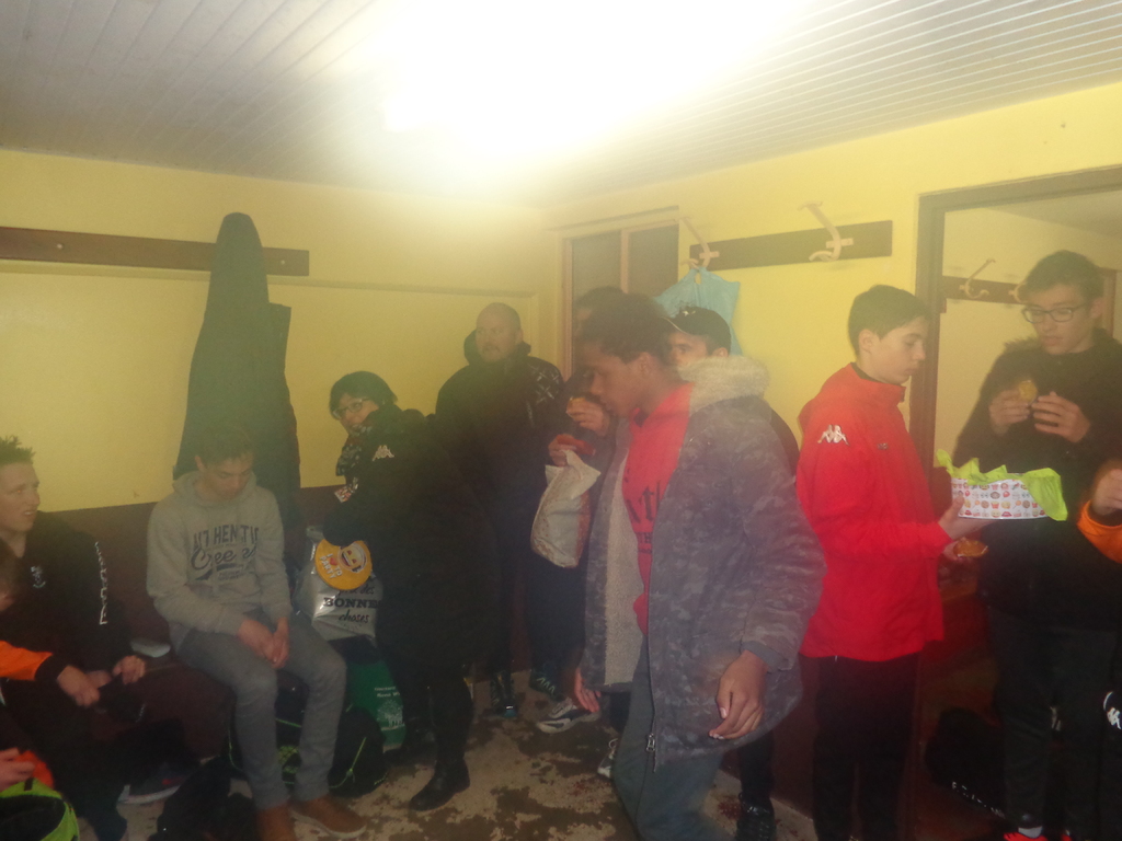 La première..., nos footballeurs U15G sont très motivés à l'idée de déguster après les matches..., les confections pâtissières de Christelle GROBELNY, dirigeante de l'équipe... C'est d'ailleurs l'occasion de la remercier bien fort de préparer pour les matches à domicile, mais aussi parfois à l'extérieur, des goûters qui font le bonheur des participants aux matches U15G (A), voir accompagnateurs... Il suffit de regarder l'enthousiasme de Mattéo PHEULPIN lors du service des fameuses croquettes, ou encore la joie de notre capitaine, Stéphane RAFFENNE, à l'idée de devoir se farcir une nouvelle fois ces croquettes... Quant à Matthias MAYEUR, que dire de l'expression de son visage, si ce n'est qu'il parait horrifié à l'idée de devoir avaler de nouveau les réalisations de notre chère dirigeante... Allez, courage les gars, la fin de saison approche...