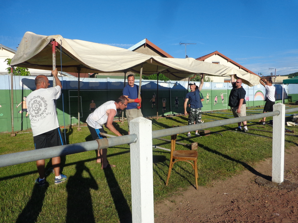 En effet, dès le samedi 10 juin, en après-midi, près de dix bénévoles se sont rendus disponibles pour monter les chapiteaux, récupérer les tables et bancs, installer les filets, récupérer les marchandises et le matériel sportif...