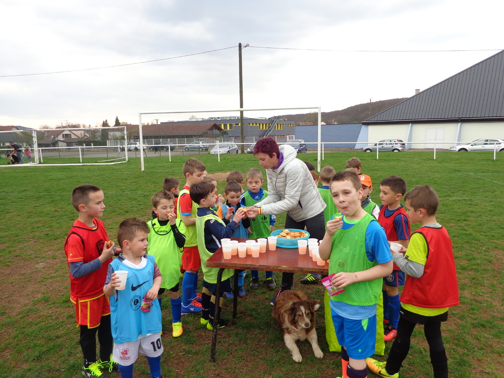 Mercredi 05 avril, une fois la séance d'entraînement U7G terminée..., Léandre ZANELLA a fêté son anniversaire avec ses coéquipiers, au stade de CHAMPAGNEY...