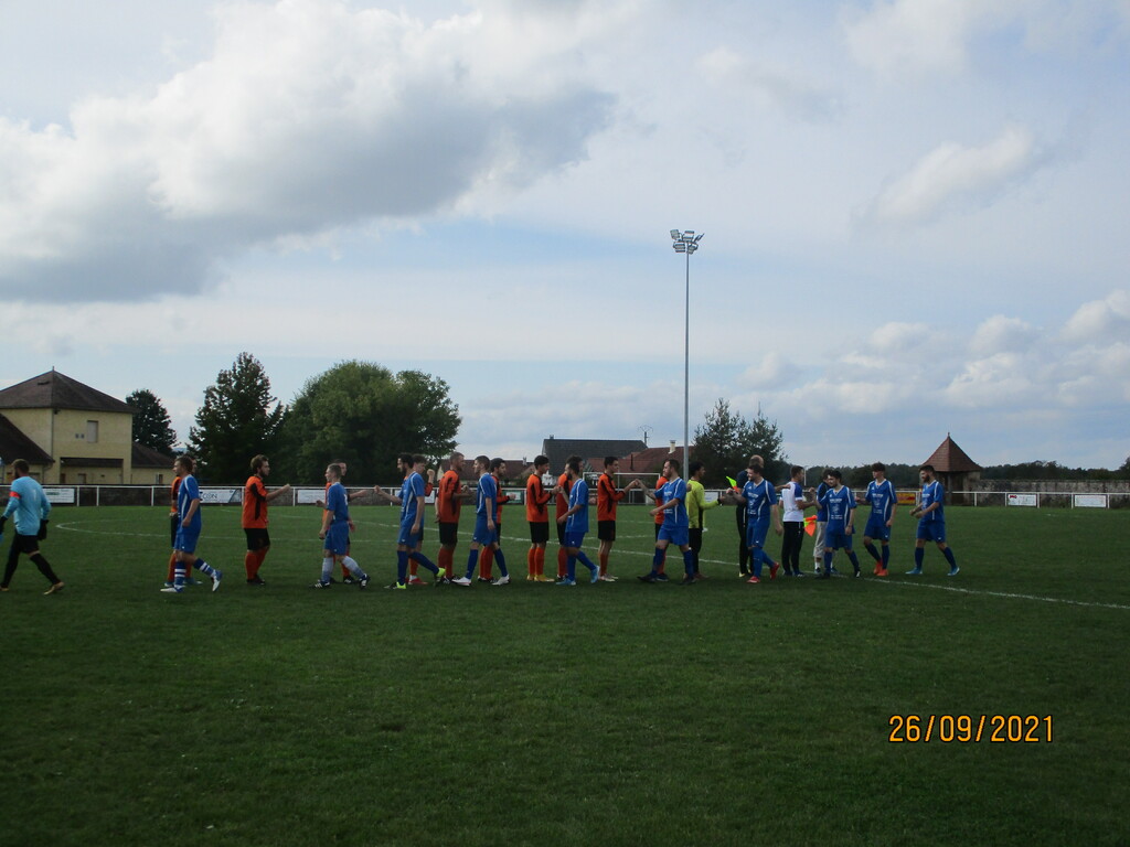 A FRANCHEVELLE, notre équipe réserve est passée totalement à côté de son match... Cela est bien dommage, car elle avait l'opportunité de réaliser une bonne opération comptable en cas de victoire... Dès l'échauffement avec ballon, nos joueurs ne semblaient guère à leur avantage... Cela s'est vérifié dès l'entame de match, où nos joueurs étaient quelque peu perdus sur le terrain... Ils ont d'ailleurs encaissé un but après seulement sept minutes de jeu... Les erreurs de placement et le déchet technique perdurent durant ce premier acte, où nos joueurs réussissent cependant à égaliser après 42 minutes de jeu, par l'intermédiaire de Ludovic PY, bien lancé en profondeur par Rayan LEUVREY... Malgré une première période d'un bien faible niveau, nos orange et noir retournent donc aux vestiaires sur un score de parité... La seconde période sera malheureusement le triste reflet du premier acte... Les locaux reprennent l'avantage à la marque à la 57', un attaquant local chipant le ballon à notre défense centrale, peu réactive sur ce coup... Nos joueurs essaient alors tant bien que mal d'inscrire un second but, mais notre équipe est trop désorganisée et peu à son aise techniquement et collectivement pour y parvenir... Il est cependant à signaler que notre équipe touchera par deux fois la transversale du dernier rempart local, ce dimanche... Enfin, les locaux inscrivent un troisième but dans les derniers instants de la rencontre et s'imposent donc ainsi sur le score de 3 buts à 1, face à une bien faible équipe réserve du FC PAYS MINIER... Il va falloir que notre groupe se remobilise, sans quoi une telle déconvenue pourrait se renouveler les week-ends prochains et il n'y a évidemment aucun plaisir dans ces circonstances...