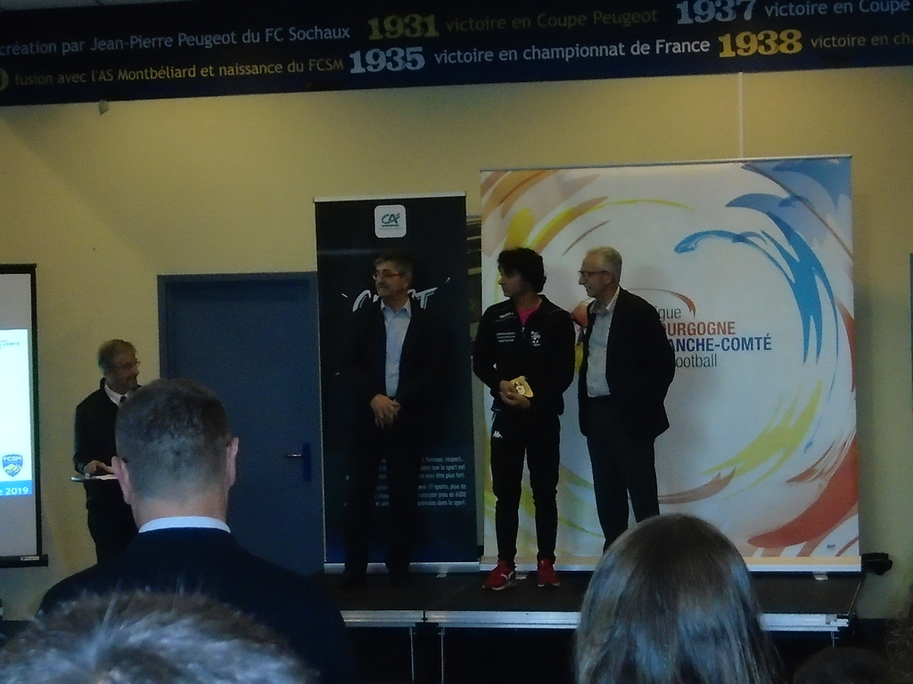 Vendredi 25 octobre, dans le salon PEUGEOT du stade Bonal de SOCHAUX, Benjamin HOUILLON a reçu des mains du Président de la Ligue de football de BOURGOGNE / FRANCHE-COMTE, Monsieur Daniel FONTENIAUD et de son vice-président délégué, Monsieur Roland COQUARD, une médaille de la Fédération Française de Football, au titre de jeune dirigeant... C'est ainsi une façon de le féliciter pour son investissement, mais aussi de l'encourager à poursuivre dans ce sens...