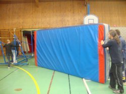 C'est ce matin que nos bénévoles sont rentrés dans le vif du sujet avec la mise en état du gymnase, pour l'accueil des quelques cinq cents footballeurs qui fouleront le sol du gymnase de CHAMPAGNEY durant ces 7 jours de football en salle... En effet, il a fallu tout d'abord évacuer tout le matériel entreposé dans le gymnase, puis installer les bancs, la buvette, la sono, etc...