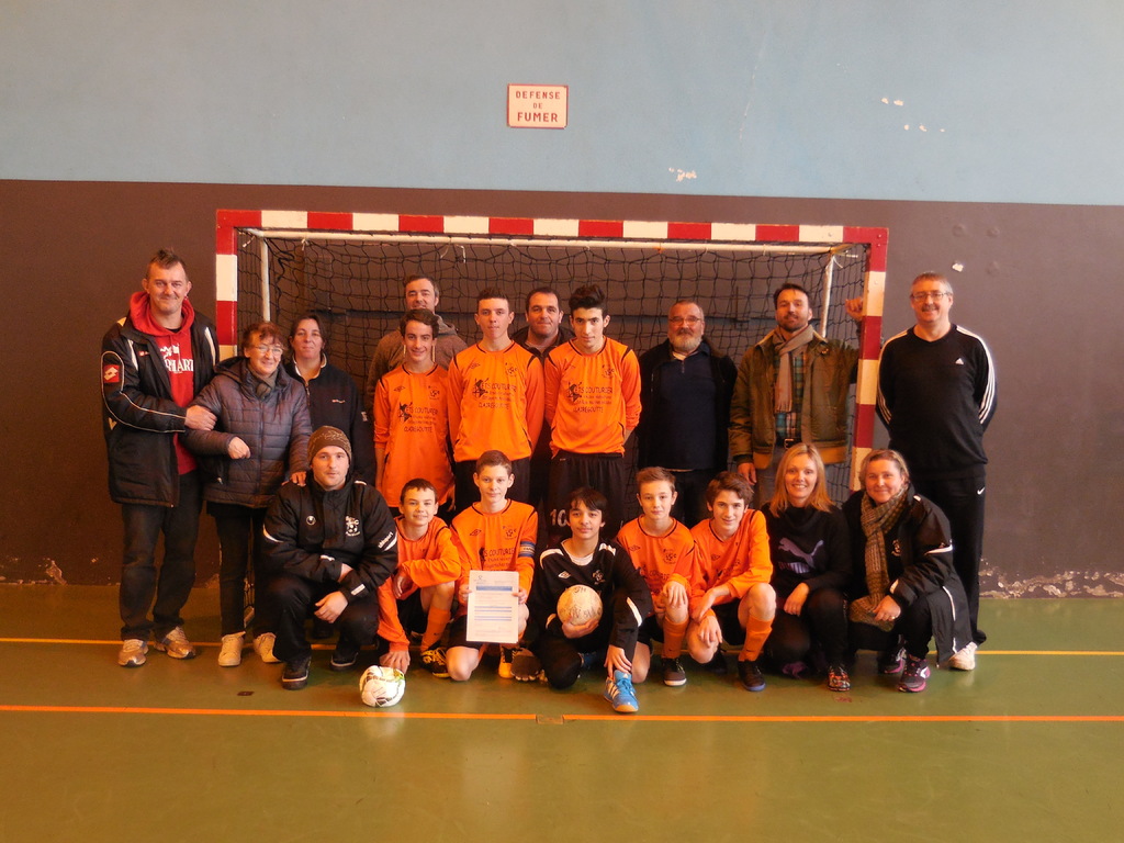 FELICITATIONS à nos footballeurs U15, mais aussi à leurs dirigeants, à savoir, Gabrielle SALVI, Virginie VUILLEMEY, Orlando GENGA, Stéphane VUILLEMEY et votre serviteur..., auquels ont peut associer aussi Christophe COMBETTE et tous les dirigeants et éducateurs du club qui ont, à une saison ou à une autre, encadré un, ou plusieurs de nos finalistes régionaux... Et puis, des remerciements à nos inconditionnels supporters, qui eux-aussi se sont levés très tôt ce matin... et qui sauront se reconnaître à cette occasion... Enfin, une pensée également pour les joueurs de la catégorie U15 du FC PAYS MINIER qui n'ont pas participé à ces derniers tours du FUTSAL, mais qui doivent être persuadés que cette qualification est aussi la leur...