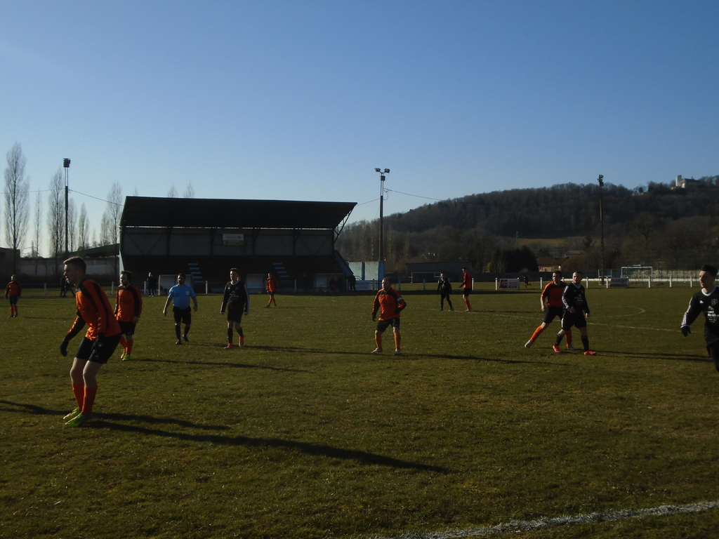Ils ouvrent cependant la marque dès la 47', par Sébastien VILLEMINEY, qui est à la réception d'un bon centre venu de la droite et adressé par Thomas CARTERON... Le ton monte alors dans le camp adverse... Les visiteurs s'activent pour recoller au score et y parviennent à la 61', sur coup-franc... Coup du sort pour nos orange et noir, puisque la balle est détournée par le mur dans notre propre but... 1 à 1 !