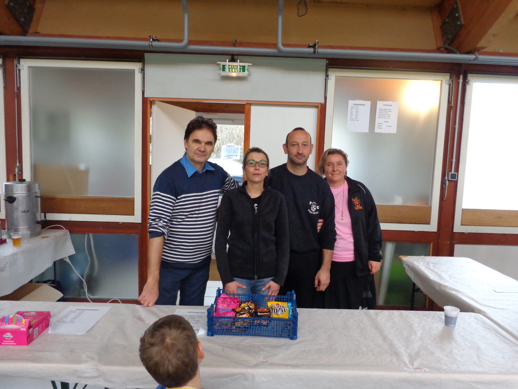 Ils étaient une bonne vingtaine le samedi 21 décembre, en matinée, dans le gymnase pour mettre celui-ci en configuration "tournois"... C'est qu'il a fallu évacuer moultes matelas, agrès de gymnastique et autres, et puis aussi installer bancs et tables, mettre en place la buvette et la table de marque, préparer les récompenses pour les 8 tournois, récupérer la marchandise... Enfin, il y avait du boulot..., mais vu le nombre de bras..., tout ce travail s'est réalisé en quelques heures et dans la bonne ambiance...