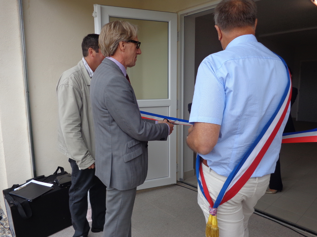 Une fois les discours terminés..., le Maire de RONCHAMP a remis symboliquement les clés des locaux au président du FC PAYS MINIER, puis, Monsieur le sous préfet a coupé le ruban aux couleurs de la République Française...