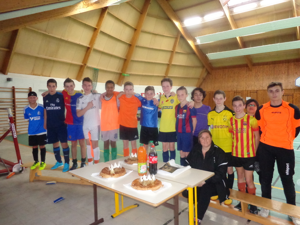 Les footballeurs U15 ont été les seconds à croquer dans une part de galettes... C'est hier après-midi, à l'issue de la séance d'entraînement qui s'est déroulée au gymnase de CHAMPAGNEY, que nos jeunes joueurs ont tiré les rois... Un moment également bien agréable pour tout le groupe U15...