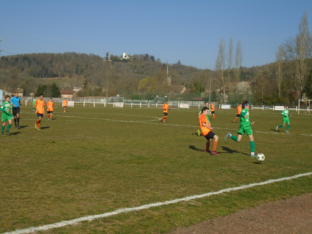 En matinée et au stade L.O FROSSARD de RONCHAMP, nos footballeurs U17G, quelque peu en difficulté dans leur championnat, ont réalisé une bonne prestation face aux joueurs de SAINT-APOLLINAIRE, quatrièmes du championnat de Régional 1... En effet, nos orange et noir ont tenu la dragée haute aux visiteurs, avec notamment un Stéphane RAFFENNE très remuant sur le front de notre attaque et un Ryan LEUVREY, également très bon au sein de notre défense centrale... C'est Matéo PHEULPIN qui a ouvert le score de cette rencontre, relativement équilibrée... Malheureusement pour nos couleurs, les visiteurs parviennent à égaliser en toute fin de première période... En seconde période, notre équipe fait front aux attaques adverses, avec notamment un milieu de terrain qui se sera montré très combatif, à l'image évidemment de Tom DURUPT... Aucun but ne sera inscrit lors de ce second acte... Ainsi, les deux équipes se séparent sur le score de 1 but partout... C'est évidemment un bon point de pris pour les partenaires de Valentin CORDIER, également très précieux dans l'axe de notre défense... Ce résultat positif doit donc encourager nos footballeurs U17G à continuer à travailler sérieusement, ce, afin de tenter de confirmer cette bonne prestation d'ensemble et ce bon résultat... Il est à noter que notre gardien de but, Théo CRAMATTE, a du être évacué par les secours, une fois la rencontre terminée, suite à un choc reçu en fin de match... Les premières nouvelles concernant notre portier, sont cependant rassurantes...