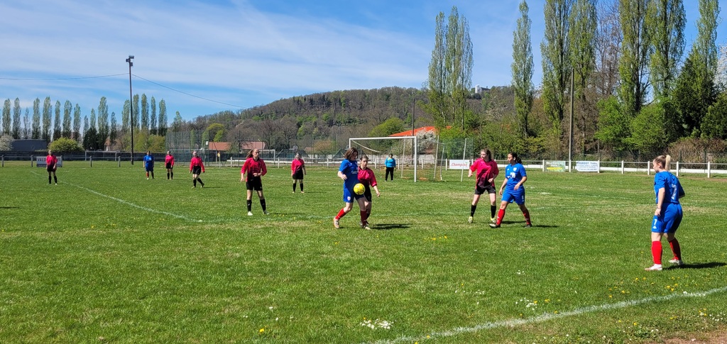 Nos footballeuses Séniors F sont elles désormais éliminées de la coupe Crédit Agricole, suite à la défaite subie hier, en début d'après-midi, au stade L.O FROSSARD de RONCHAMP, face au RACING BESANCON (B)... Après un premier quart d'heure très compliquée, où nos représentantes se sont vues mener de trois buts, les partenaires de Manon SOUDRY ne se sont pas découragées... En effet, elles n'ont jamais baissé les bras, malgré un score défavorable et une physionomie de match totalement à l'avantage des visiteuses... Ainsi, elles sont parvenues à ne perdre au final que sur le score de 4 buts à 0, alors que le début de partie pouvait présager une lourde défaite... Nos footballeuses Séniors F sont donc, malgré la défaite, à féliciter pour leur état d'esprit, ce d'autant plus qu'elles traversent depuis plusieurs semaines maintenant, une période difficile, du fait notamment d' un problème d'effectif...
