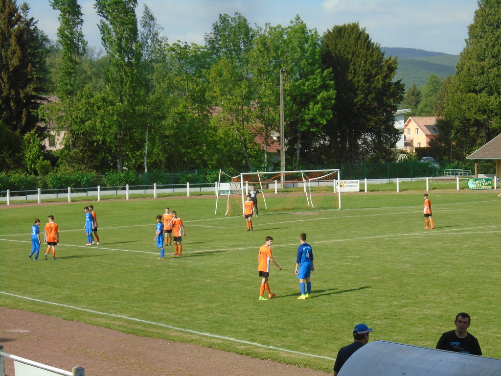 Enfin, victoire très importante de notre équipe U18G, ce samedi, au stade L.O FROSSARD de RONCHAMP, face à un autre prétendant au titre de champion, FRANCHEVELLE (A)... Les visiteurs étaient à prendre au sérieux puisqu'ils s'étaient imposés 7 à 3 sur le terrain de LURE, dernièrement, alors que nos joueurs s'étaient eux, inclinés ce mardi, 5 à 1 sur ce même terrain... Les visiteurs dominent le début de partie, mais se font surprendre sur un contre mené avec beaucoup d'efficacité par notre attaquant, Tom FEVRE... C'est ensuite Stéphane RAFFENNE qui, suite à un bon pressing, file en direction du but adverse pour tromper avec sang froid le dernier rempart des visiteurs... Quelle efficacité de nos attaquants ! La pause est sifflée sur ce score de 2 à 0 pour les orange et noir... Les partenaires de Samuel SICOS réalisent ensuite un bon premier quart d'heure de la seconde période... Ils auraient d'ailleurs du inscrire deux à trois buts dans ce laps de temps, mais nos joueurs se sont montrés très inefficaces, devant le but adverse... C'est dommage car du coup, le résultat final reste indécis... Les visiteurs reprennent d'ailleurs possession de notre camp, mais Stéphane RAFFENNE fait un petit festival sur son côté gauche, avant de tromper le gardien de FRANCHEVELLE (A)... Nos adversaires essaient, malgré le fait d'être menés 3 à 0, de recoller au score... Ils inscrivent d'ailleurs un but à trente minutes du terme de la rencontre et continuent alors de pousser... Nos joueurs marquent le pas physiquement et les visiteurs en profitent pour se montrer plus menaçants... Notre gardien, Thomas CARDOT, voit même son poteau gauche le sauver... Enfin, à force de courage, les coéquipiers de Léo PETITGIRARD parviennent à conserver leur avantage de deux buts et s'imposent ainsi, certes sans briller footballistiquement parlant, 3 à 1, face à FRANCHEVELLE (A)... Cette victoire est évidemment très importante pour la suite du championnat... Elle permet d'écarter quasiment de la course au titre nos adversaires du jour, mais pas LARIANS (A)... Nos footballeurs U18G se doivent donc de gagner leurs deux derniers matches pour terminer tout en haut du classement... Ce serait alors fantastique, mais bon, on n'en est pas encore là !