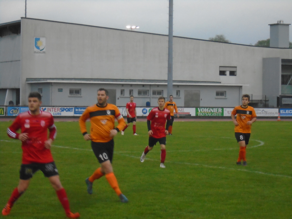 Enfin, très belle victoire de nos footballeurs Séniors G (A), ce samedi soir, au stade de LURE, face à la réserve locale... Privée de plusieurs joueurs, notre équipe a cependant su faire abstraction de cela et ainsi, à se concentrer sur son match... Les locaux développent dès l'entame un jeu collectif de qualité, facilité il est vrai, par l'état de la pelouse... Nos joueurs sont cependant plutôt bien en place et surtout volontaires... Notre équipe se procure quelques bonnes, pour ne pas dire très bonnes occasions, mais sans jamais pouvoir marquer, lors du premier acte... Pire, suite à une erreur défensive, les locaux ouvrent la marque (24')... Les deux équipes retournent d'ailleurs aux vestiaires sur le score de un à zéro, en faveur des locaux, probablement tout heureux de mener au tableau d'affichage... En seconde période, notre équipe domine les débats... Les locaux baissent effectivement de rythme, au contraire des partenaires de Julien ANOTO... Le temps passe et notre équipe ne parvient pas à revenir au score, jusqu'à la 76', où suite à un coup-franc de Sébastien VILLEMINEY, Laurick A'SIM propulse le ballon de la tête, dans le but adverse... Notre équipe vient d'égaliser et c'est un moindre mal... Nos joueurs continuent ensuite sur leur lancée... Jordan TRUCHOT, très bien lancé en profondeur, prend le dessus sur son défenseur, est glisse la balle entre les jambes du dernier rempart local... Sébastien VILLEMINEY arrive en embuscade et inscrit le second but de nos couleurs (84')... Nos joueurs font ensuite les efforts nécessaires pour conserver leur avantage à la marque et ainsi parvenir à s'imposer, 2 à 1, sur le terrain de LURE (B)... Bravo ! Cette victoire conforte notre équipe fanion dans le haut de tableau... C'est de bon augure pour la fin de saison et surtout pour la saison prochaine... En tous les cas, nos footballeurs Séniors G (A) sont à féliciter pour leur succès en terre luronne... Un succès rendu possible par un respect des postes, une bonne combativité, une belle solidarité, un jeu collectif globalement satisfaisant et une persévérance, liée à une sérénité, qui font plaisir à voir et qui sont à renouveler, pour ne pas dire à adopter lors de chaque sortie... Encore bravo à nos footballeurs Séniors G (A) et au staff...