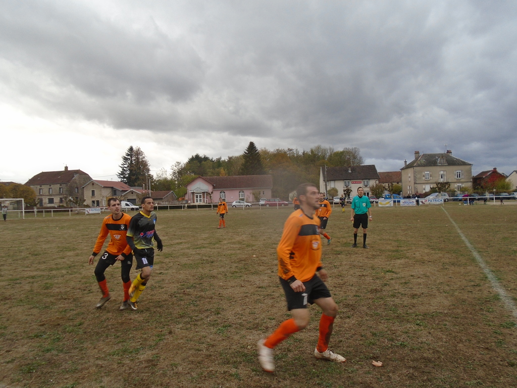 La partie débute mal pour nos orange et noir qui encaissent un but dès la 3' de jeu, suite à un débordement côté droit de notre défense, repris victorieusement en deux temps au second poteau...