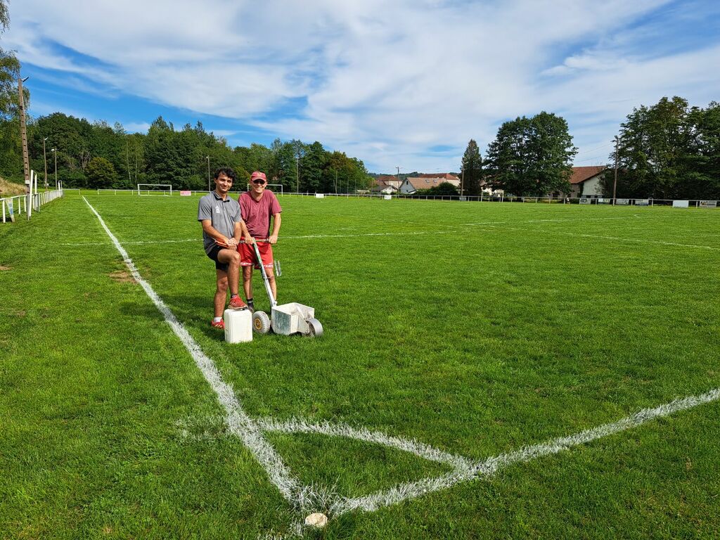 De grands remerciements maintenant à Benjamin HOUILLON et Zlatko KANJUGA, pour le traçage du terrain de CHAMPAGNEY...
