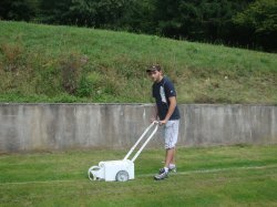 Contacté hier soir, Anthony MOLNAR, dit "MOLTON", a très sympathiquement accepté de venir aider votre serviteur pour tracer le terrain de football de PLANCHER...