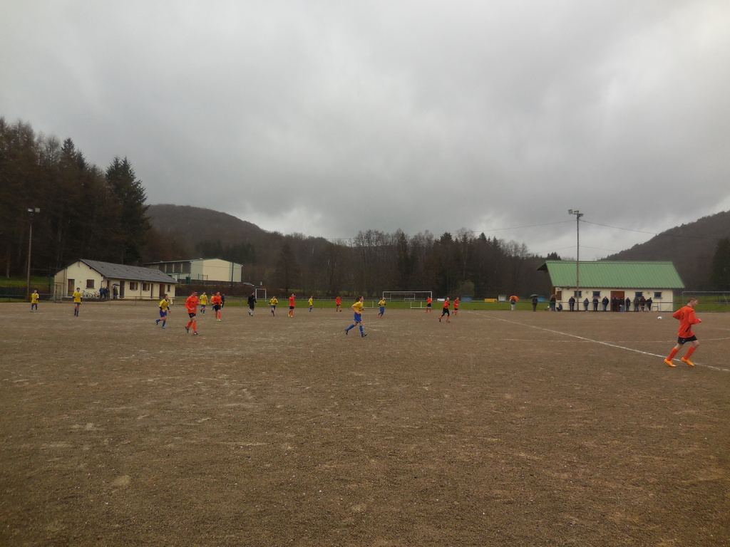 Arrivés sur les lieux, nos joueurs comprennent très rapidement que la rencontre se jouera sur terrain stabilisé, le terrain en herbe n'étant pas tracé...