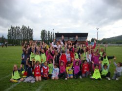 Les matches terminés, la petite cinquantaine de participantes, excusez du peu... (mais dans quoi s'engage-t-on...), se rassemblent pour une photo de groupe devant un parterre de parents, heureux au passage, de voir les jeunes filles satisfaites de la séance...