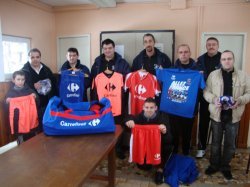 Les U11 se sont vus remettre un équipement complet pour les matches (chaussettes, shorts et maillots CARREFOUR) ainsi qu'un sac de transport pour cet équipement.