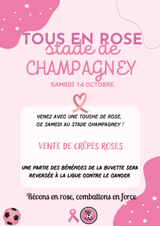 De plus, une vente de crêpes roses est prévue à la buvette du stade de CHAMPAGNEY, pour marquer cette occasion spéciale.