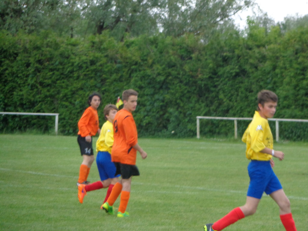 Après un déplacement d'une heure trente minutes..., nos orange et noir se sont préparés pour tenter de se qualifier pour une seconde finale et pas des moindres, la finale de la Coupe de HAUTE-SAÔNE... Les partenaires de Gautier BAUMGARNTER, encore quelque peu fatigués du match de l'avant-veille, débutent la rencontre difficilement... Nos défenseurs et nos milieux se laissent bousculer par les joueurs visiteurs... Ces derniers, très motivés à l'idée de pouvoir jouer une finale départementale..., se montrent d'ailleurs très dangereux dès la deuxième minute de jeu et il en faut de peu pour qu'ils ne trompent la vigilance de notre gardien, Benjamin HOUILLON...