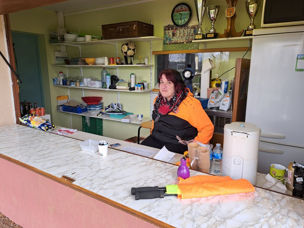 Elle a aussi tenu la buvette du stade de RONCHAMP, le lundi de Pâques, lors de la rencontre de nos footballeurs Séniors G (B)...