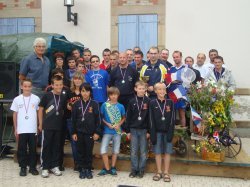 Sous un ciel menaçant et entre quelques représentations des poms poms girls d'HERICOURT et de drôles de dames de l'Amicale Laïque de CHAMPAGNEY, nos sportifs ont été amenés à rejoindre sur l'estrade prévue à cet effet, les élus champagnerots pour recevoir leurs récompenses...