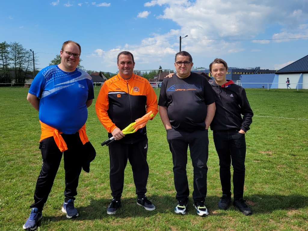 Hier dimanche, Maxime PORTIER, arbitre officiel du club, Christian PORTIER, papa de Maxime et ancien arbitre officiel du club, Julien SAPOLIN, juge de touche bénévole du club, qui a au passage fait la touche ce week-end de nos équipes Séniors G (A) samedi soir à FOUGEROLLES, Séniors G (C) dimanche matin à CHAMPAGNEY et Séniors G (B) dimanche après-midi à PLANCHER, et votre serviteur, qui a fait la touche de notre équipe U15G samedi après-midi à PLANCHER et arbitré la rencontre de nos Séniors G (C) dimanche matin au stade de CHAMPAGNEY, se sont rencontrés comme cela leur arrive malheureusement peu souvent, tant les uns et les autres sont amenés à accumuler les matches à arbitrer ou autre...