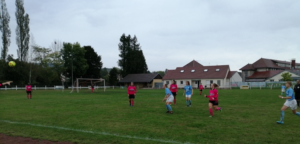 En catégorie U13F, notre équipe est allée jouer, samedi en début d'après-midi, au stade des 3 Chênes à BELFORT, face à l'équipe de l'A.S.M BELFORT (A)... Opposées à des joueuses plus physiques, techniques et bien en place tactiquement, nos rose et noir ont fait preuve de beaucoup d'envie, d'abnégation et de générosité dans l'effort... Menées 1 à 0, elles sont cependant rentrées aux vestiaires en menant sur le score de 2 buts à 1... La seconde période a été toutefois plus difficile pour nos protégées qui se sont au final inclinées 5 buts à 3... L'adversaire était tout simplement plus fort... Nos joueuses U13F sont encouragées à continuer à s'entraîner assidûment pour ainsi progresser et espérer combler l'écart avec de telles équipes, d'ici quelques semaines...