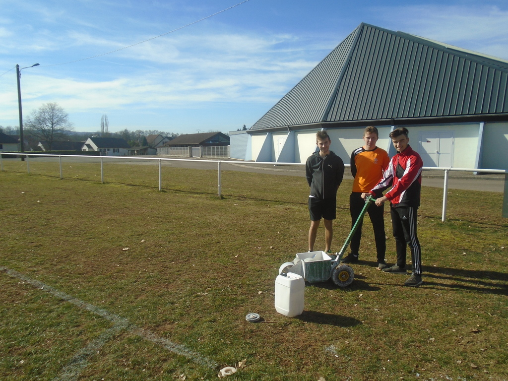 Ce mardi matin, de 10 heures 30 à 12 heures, Jean-Baptiste COTTA (U18G), Lukas FLEISCH (U17G) et Baptiste GEHIN (U17G), ont très sympathiquement accompagné votre serviteur pour tracer le terrain de CHAMPAGNEY...
