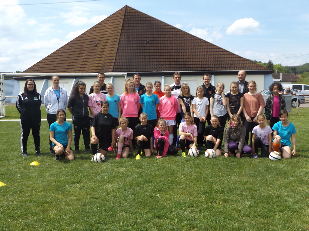 Rassemblées à 13 heures 30, 24 filles, dont deux blessées, ont été accueillies par M. DAGUENET, principal du collège, Stéphanie BARBIER et Marine DRISSI du district de football de la HAUTE-SAÔNE, Franck DAVAL, professeur d'E.P.S, Cédric GAVORY, responsable de l'Ecole de Football Féminin du FC PAYS MINIER, Julien ANOTO, futur encadrant du FC PAYS MINIER, et de votre serviteur...