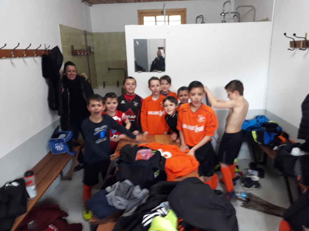 A PLANCHER, nos footballeurs U11G (A) ont joué face à VESOUL (B), sur un terrain détrempé et sous la pluie... Une rencontre arbitrée par Arnaud POIRRIER... Nos orange et noir remportent tout d'abord facilement le défi conduite de balle... Puis, ils débutent le match de bien belle manière... VESOUL (B) se procure toutefois quelques belles occasions, où notre gardien..., Maxime PORTIER..., se met en évidence à travers de très bons arrêts... Notre équipe U11G (A) mène ainsi à la pause sur le score de 3 buts à 1... La seconde période est plus compliquée pour nos protégés qui doivent faire face à une équipe de VESOUL (B) plus conquérante... Nos adversaires reviennent au score, avant que Maxence VENTZRIETTE ne redonne un avantage de deux buts à nos couleurs en transformant un pénalty en deux temps... La fin de match est difficile pour nos protégés qui voient leurs adversaires revenir logiquement à 4 à 3... Les locaux font cependant preuve d'une belle solidarité et de beaucoup de combativité... Nos footballeurs U11G (A) parviennent ainsi à remporter le match face à VESOUL (B), sur le score de 4 buts à 3... Bravo !