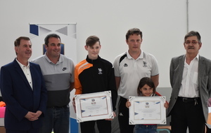 Jean-Michel COTTA, vice-président et à l'initiative du projet Album du Club, a ensuite remis de la part du FC PAYS MINIER, un présent à trois jeunes licenciés du club... Tylan FAVA, Maxence KERNER et Maxence VENTZRIETTE ont en effet été les premiers à terminer leur Album du Club... Bravo !