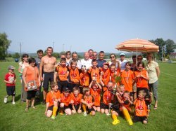 Une fois la remise de récompenses terminée..., les joueurs, coaches et parents orange et noir ont sympathiquement posé pour la traditionnelle photo de famille... et il n'a pas fallu demander aux uns et aux autres de sourire tant la joie était significative sur les visages...