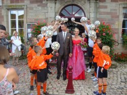 L'occasion aussi de remercier tous les jeunes joueurs du FCPM qui ont faits une jolie haie d'honneur aux mariés, accompagnés de dirigeants du club, qui eux, ne manquent vraiment aucune occasion de boire un coup !